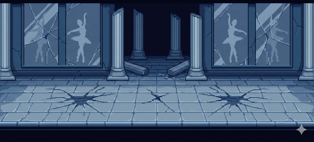 Concepto: un salón antiguo con espejos fragmentados que deforman la realidad.